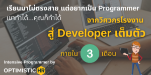 จากวิศวกรโรงงาน เรียนมาไม่ตรงสาย อยากเปลี่ยนสายงานเป็น IT แต่เคยเขียนโปรแกรมแค่ในวิชาเรียนเท่านั้น วันนี้ ‘คุณณัฐกฤษณ์’ ได้ทำงานเป็น Developer แบบเต็มตัว ภายในระยะเวลา 3 เดือน หลังเข้าร่วมโครงการ Intensive Programmer ของ Optimistic HR มาสร้างแรงบันดาลใจและสานฝันการเป็น Programmer ผ่านบทสัมภาษณ์นี้กันค่ะ . ✏แนะนำตัว เป็นใคร ทำอาชีพอะไรมาก่อนที่จะเข้าร่วมโครงการ Intensive Programmer ของ Optimistic …
